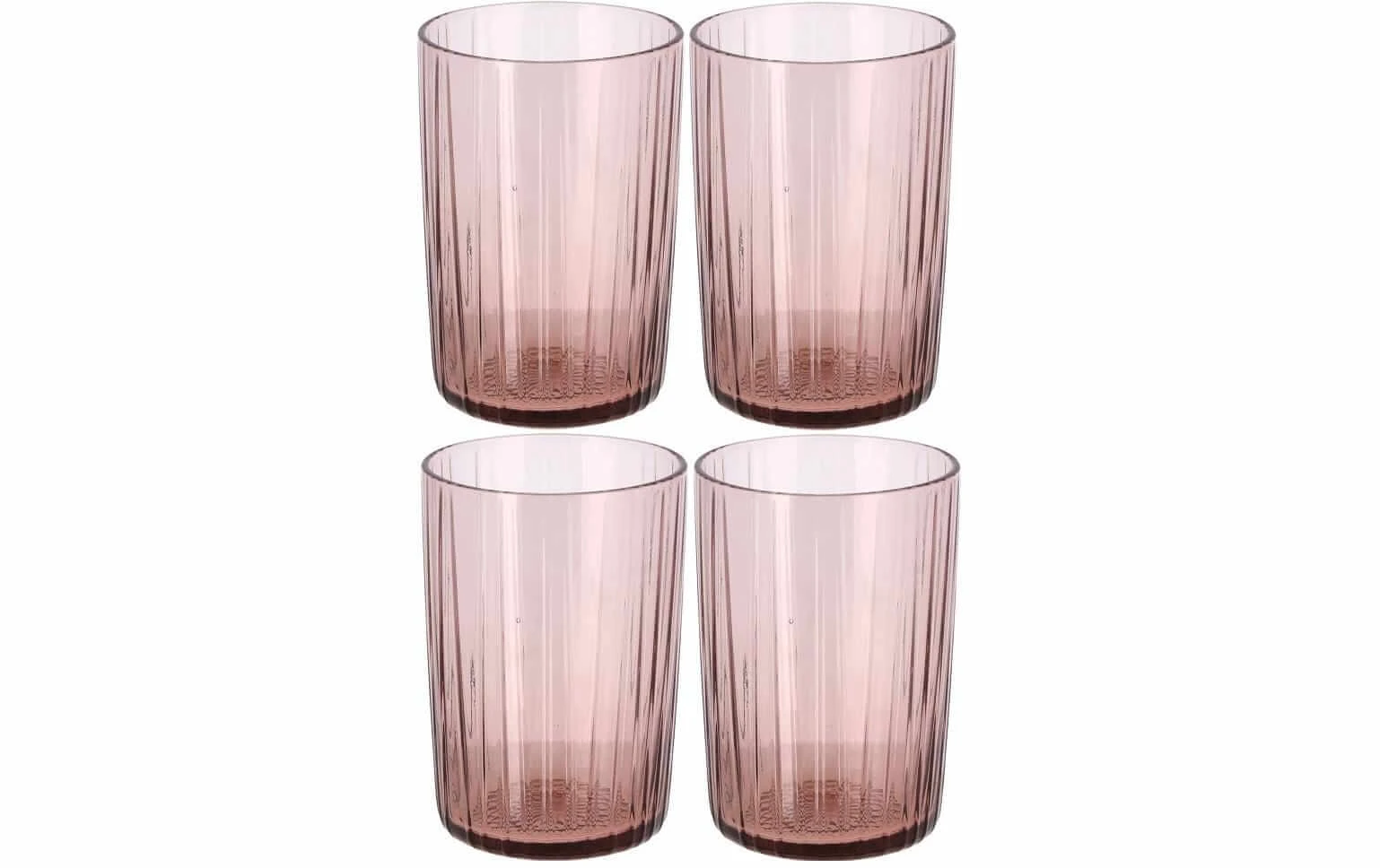 Type de verre: Verre, Matériau: Verre, Couleur de détail: Rose, Hauteur: 10 cm, Unité d’emballage: 4 Pièce/s, Volumes: 280 ml