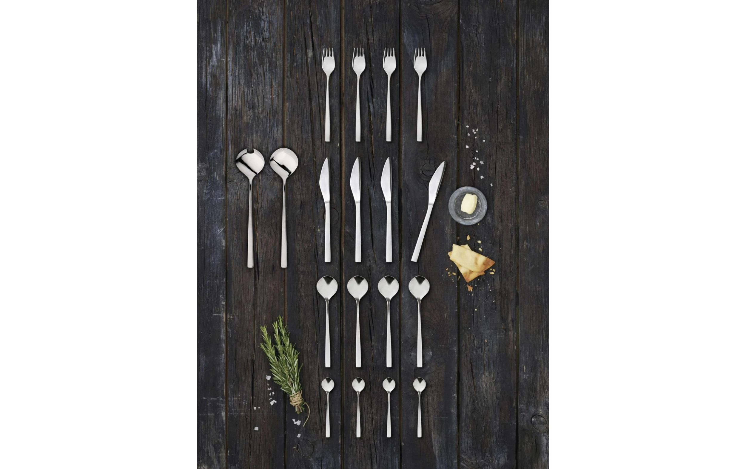 – Contenu du set: quatre cuillères à café, quatre cuillères, quatre fourchettes et quatre couteaux