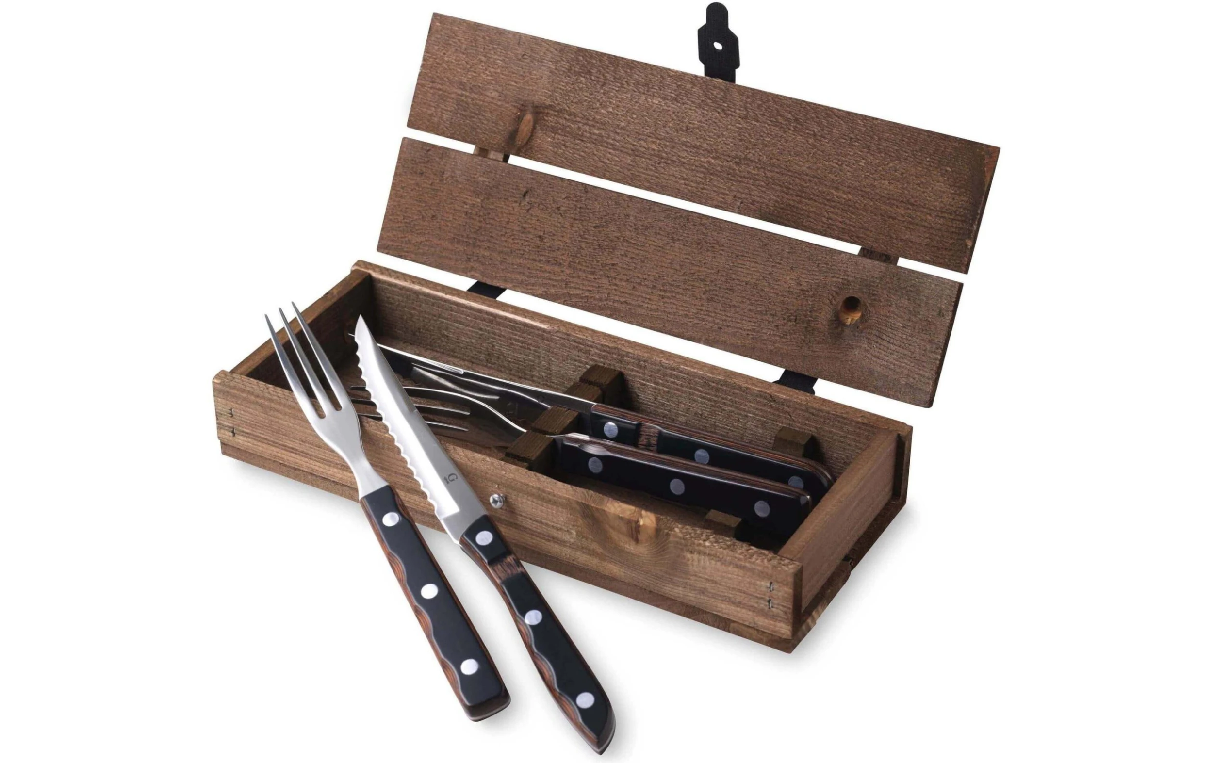 – Contenu du set: deux fourchettes, deux couteaux et une boîte en bois