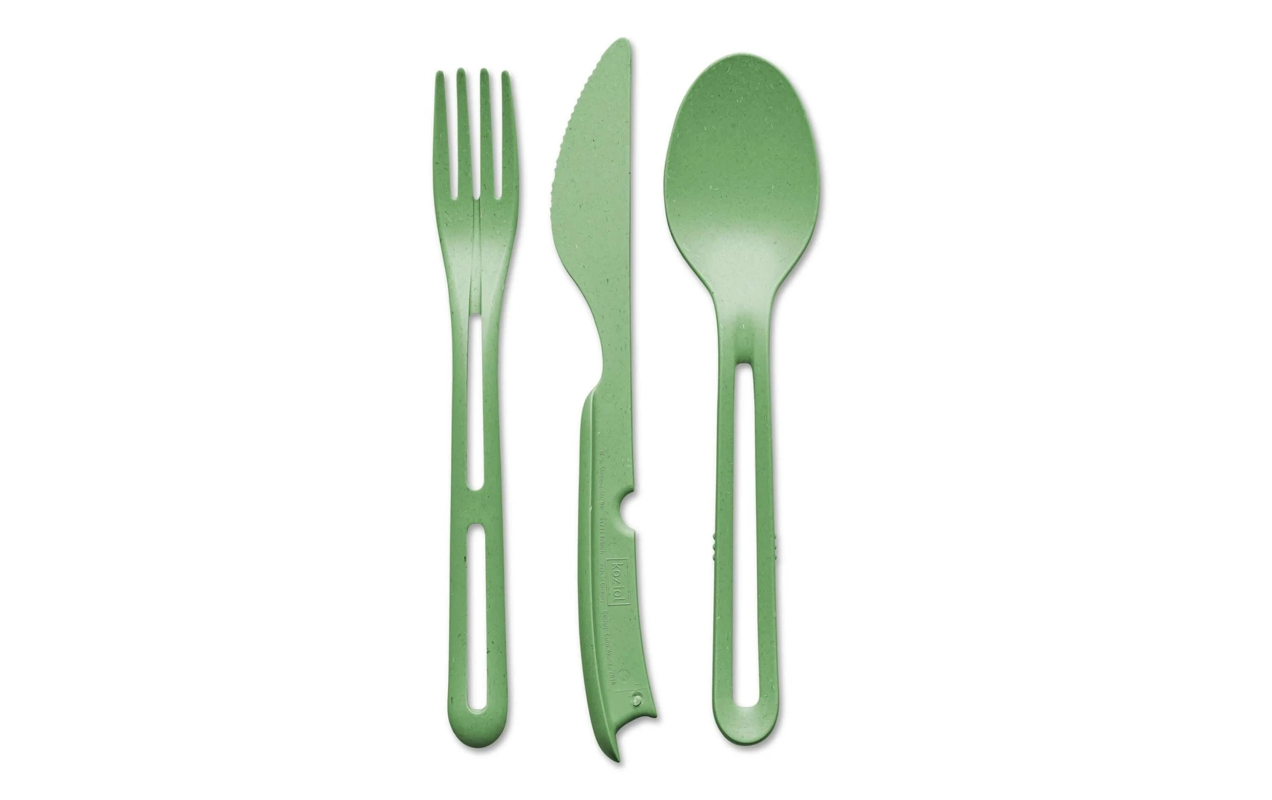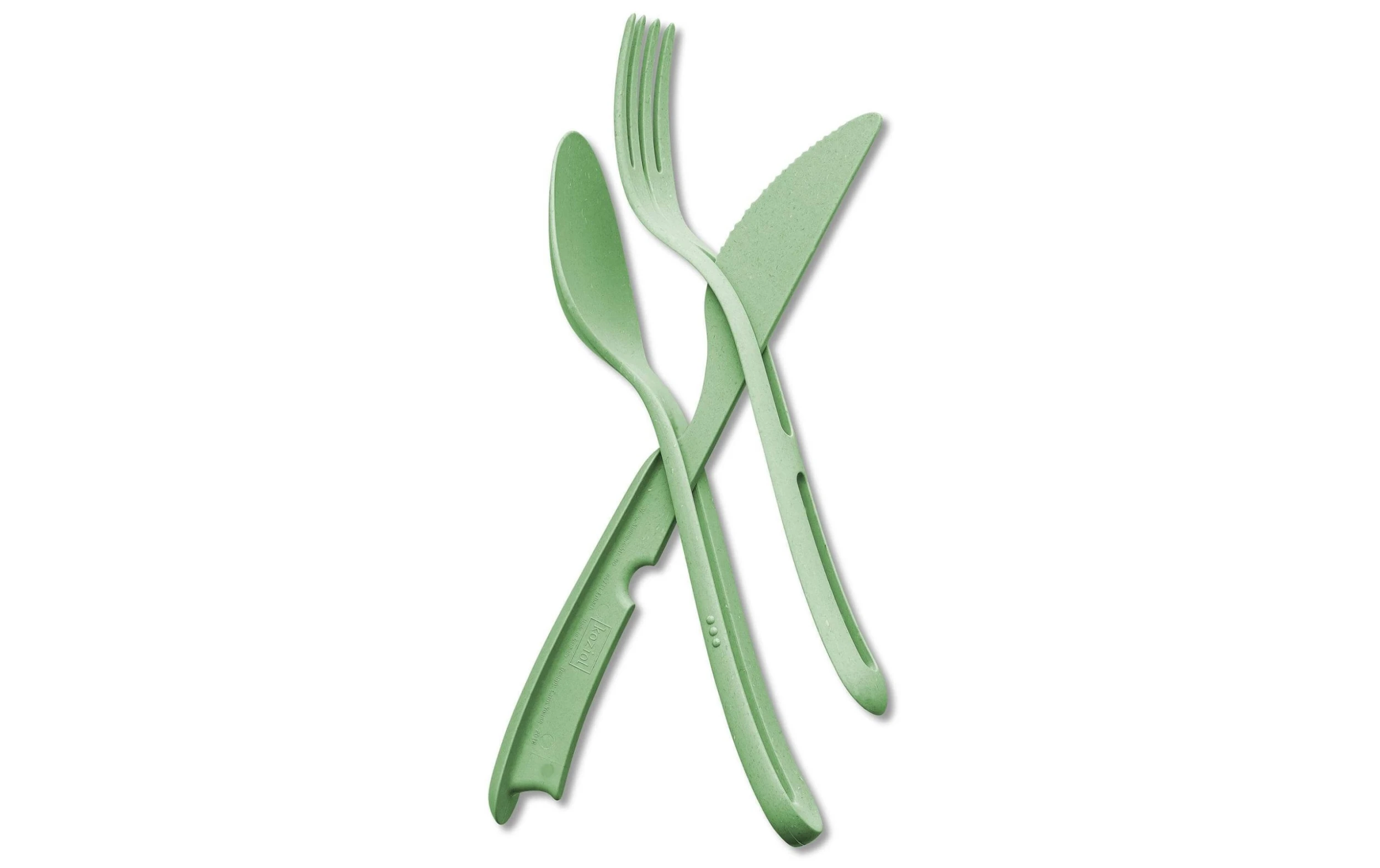 Type de produit: Couverts prêts à l’emploi, Matériau: Plastique biocirculaire, Matériau de la poignée: Plastique biocirculaire, Couleur de détail: Vert, Nombre de pièces: 3 Pièce/s, Resistant au lave-vaisselle: Oui
