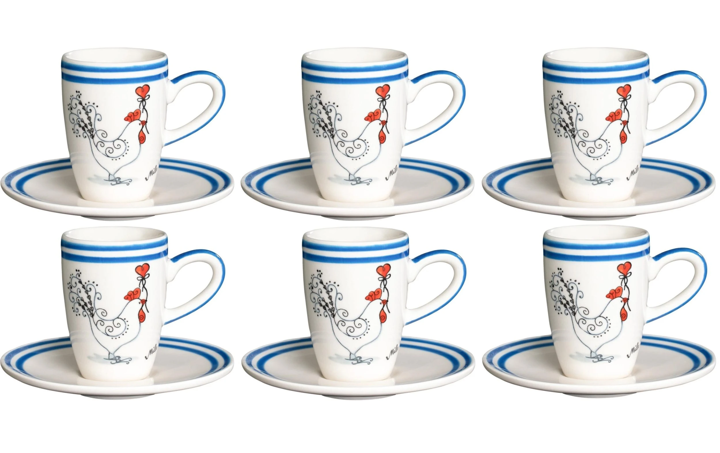 Matériau: Céramique, Type de tasses: Tasse à expresso, Équipement: Sous-tasse, Anse, Couleur de détail: Blanc, Unité d’emballage: 6 Pièce/s, Volumes: 70 ml